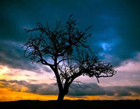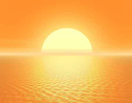 Sunset or sundown is the daily disappearance of the Sun below the horizon in the west as a result of Earth's rotation. The time of sunset is defined in astronomy as the moment when the trailing edge of the Sun's disk disappears below the horizon in the west. The ray path of light from the setting Sun is highly distorted near the horizon because of atmospheric refraction, making the sunset appear to occur when the Sun's disk is already about one diameter below the horizon. Sunset is distinct from dusk, which is the moment at which darkness falls, which occurs when the Sun is approximately eighteen degrees below the horizon. The period between sunset and dusk is called twilight.
