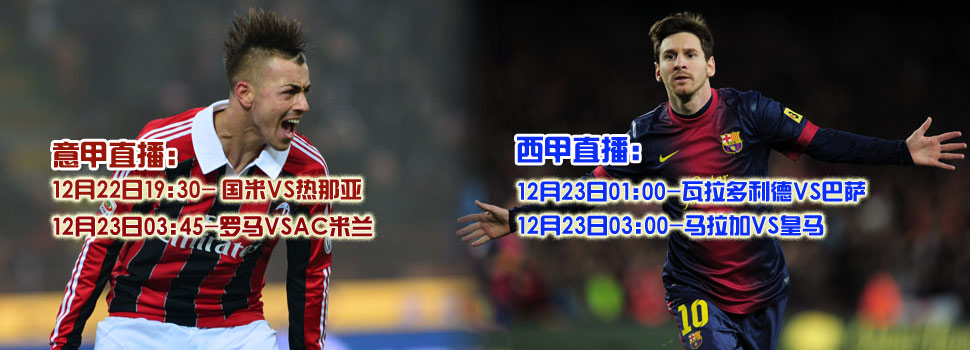 12月22日19:30,国米VS热那亚。12月23日01:00,巴拉多利德VS巴萨;3点马拉加VS皇马;3点45罗马VSAC米兰。乐视体育将三屏同步直播。