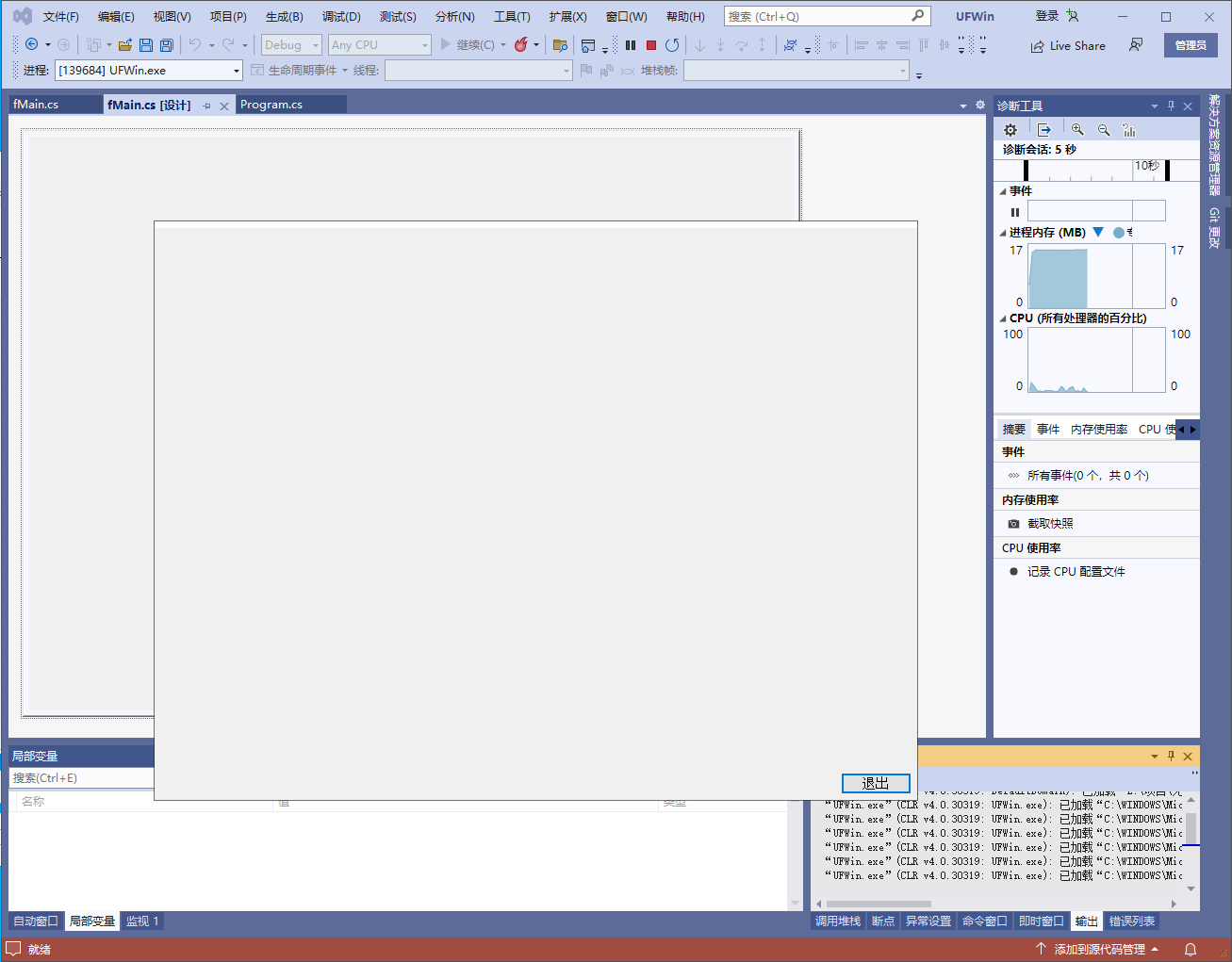3.此时在窗体设计器中,我们已经看不到标题栏的出现了。