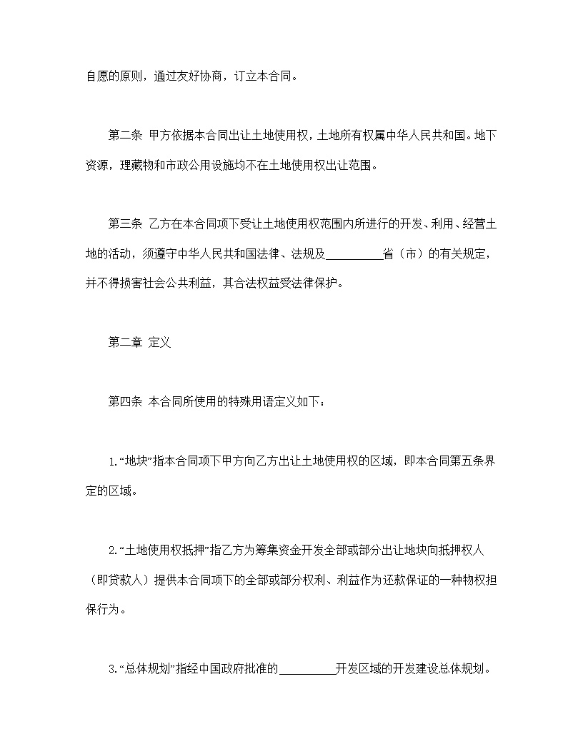 1.“地块”指本合同项下甲方向乙方出让土地使用权的区域,即本合同第五条界定的区域。