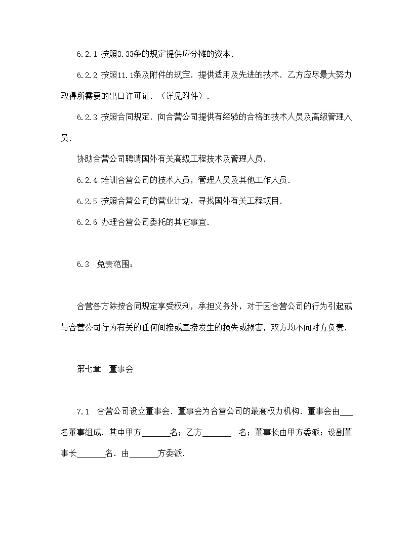 6.2.3 按照合同规定.向合营公司提供有经验的合格的技术人员及高级管理人员.