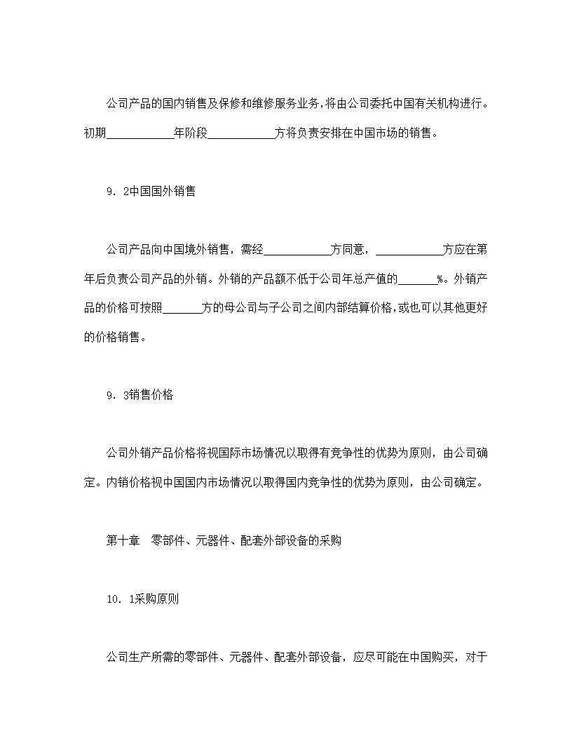 投资双方根据市场需要及公司生产能力,共同拟定 年《生产纲领》作为公司开业头 年的目标。以后生产计划按市场需要以及公司的生产能力进行安排。