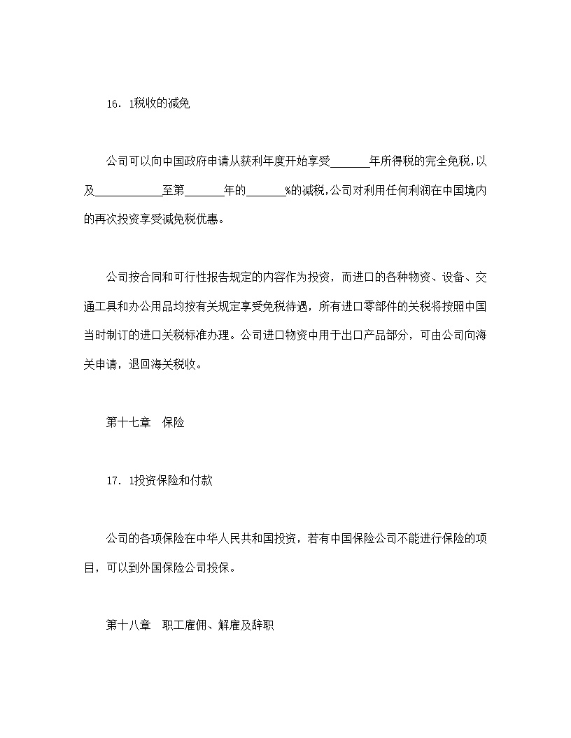 合同期满或提前终止时,一切结业程序按《合资法》以及公司章程的有关条款执行。