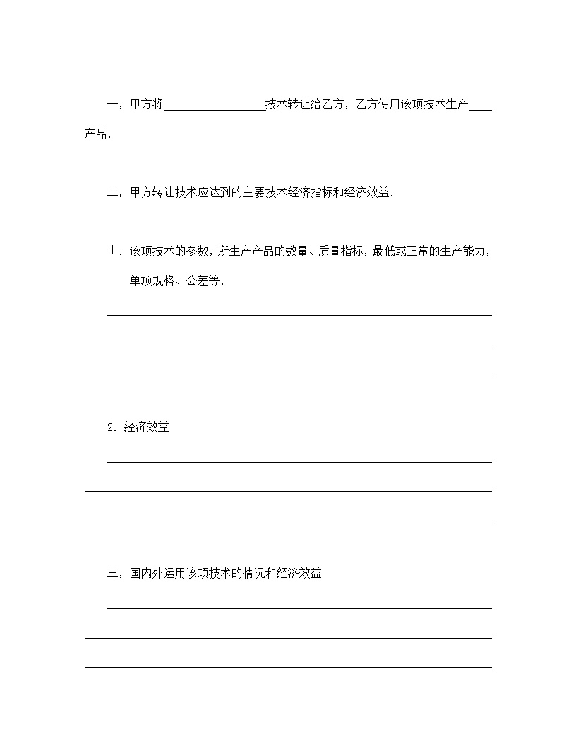 二,甲方转让技术应达到的主要技术经济指标和经济效益.