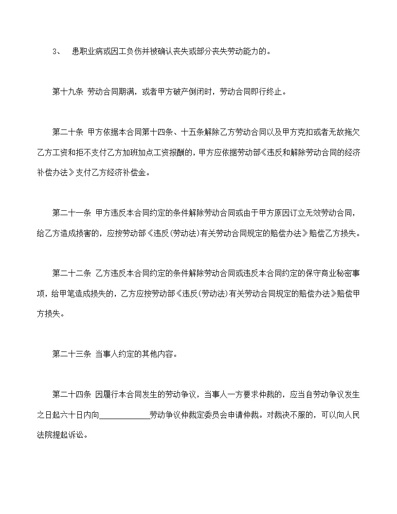 3、 甲方不能按照本合同规定支付劳动报酬或提供劳动条件的。