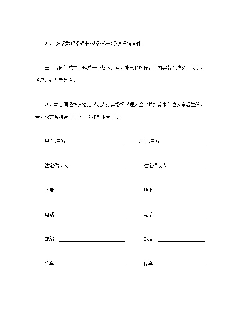 本合同书由项目法人(业主) (以下简称“甲方”)与监理单位 (以下简称“乙方”)协商一致签订。