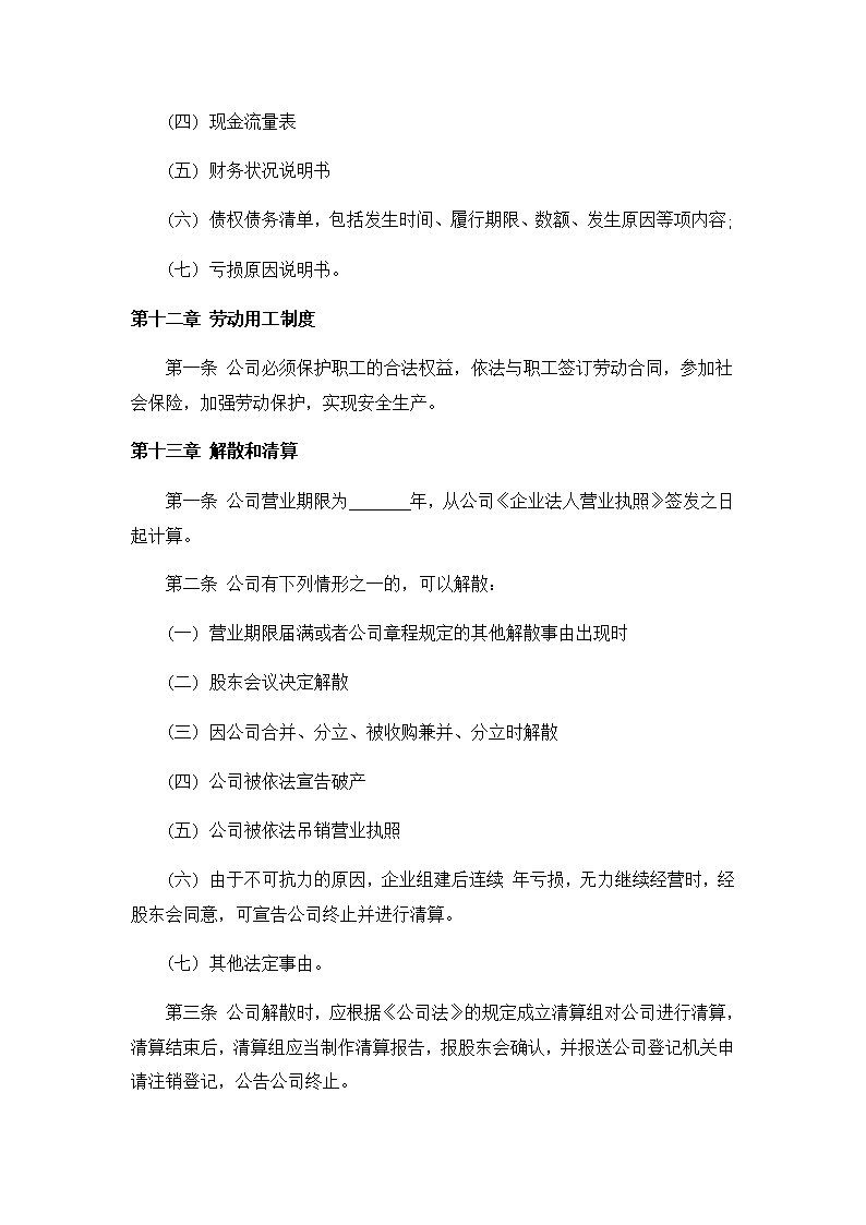 第二条 公司名称为: 。本公司是企业法人,股东以其出资额为限对公司承担责任,公司以其全部资产对公司的债务承担责任。