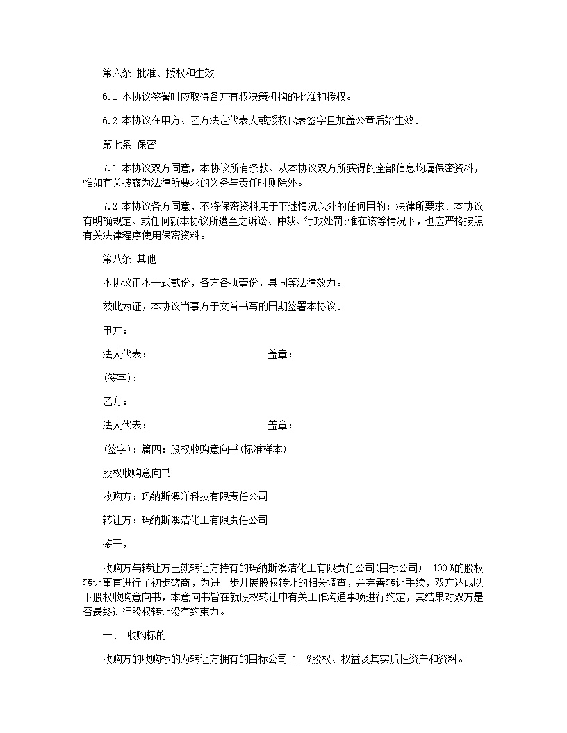 附件:双方身份证明有效影印件篇三:股权收购意向协议