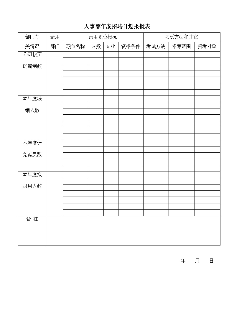 人事部年度招聘计划报批表