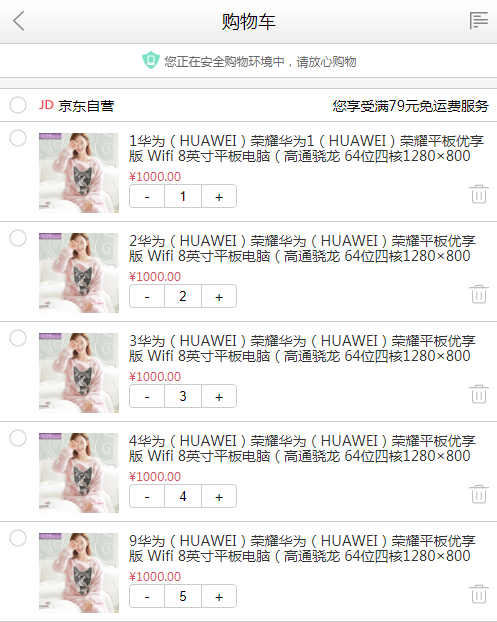 以下是 jQuery移动端购物车商品删除代码 的示例演示效果: