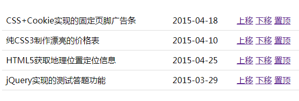 <td><a href="#" class="up">上移</a> <a href="#" class="down">下移</a> <a href="#" class="top">置顶</a></td>