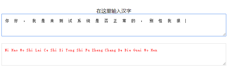 以下是 jQuery实现汉字转换成拼音代码js代码 的示例演示效果: