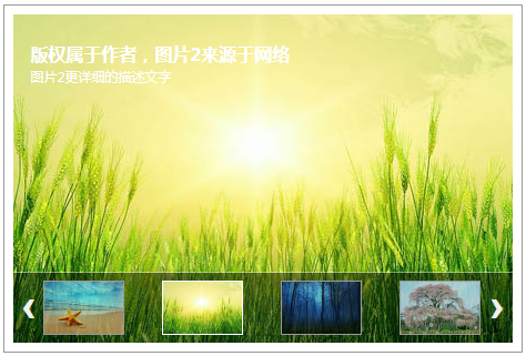<li><a href="#"><img src="img/2.jpg" thumb="" alt="版权属于作者,图片2来源于网络" text="图片2更详细的描述文字" /></a></li>