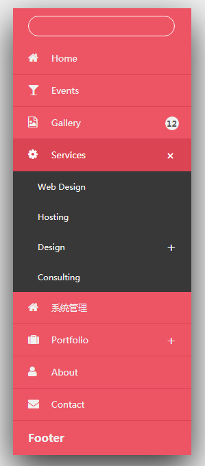 <li><a href="#"><i class="fa fa-home"></i>系统管理 </a></li>